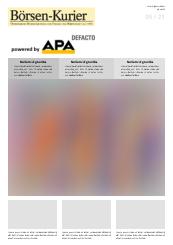 Die österreichische Wochenzeitung für Finanz und Wirtschaft besteht seit 1922. In jeder Ausgabe widmet sich die Zeitung der aktuellen Woche an den Finanzmärkten sowie Aktien und Börsen international und liefert dazu Korrespondentenberichte, Expertenanalysen und Serien, eine Finanzbibliothek, eine vollständige Meldungsübersicht über österreichische AGs, Aktienanalysen und Hauptversammlungs-Berichte, Chartanalysen uvm.