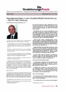 Die Verbands- und Fachzeitschrift informiert über wichtige und aktuelle Themen aus allen Versicherungsbereichen, u. a. über Rechtsprechung, Grundsatzdiskussionen und neue Versicherungsprodukte. 'Die Versicherungspraxis' ist Fachorgan der gewerblichen Versicherungsnehmer sowie Mitgliederzeitschrift des Deutschen Versicherungs-Schutzverbandes e.V.(DVS).