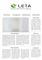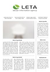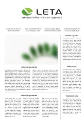 Latvia National News Agency LETA is a full service news agency in Latvia that provides quality news and business information solutions to all kinds of organizations and businesses. LETA is an indispensable primary source of top sociopolitical and economic information in Latvia. LETA provides unbiased and comprehensive information and ensures accessibility of information to all organizations to which information is a necessary resource in their daily work.