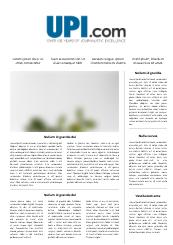 The UPI NewsTrack provides up-to-date information for readers who are looking for stories relevant to their needs, produced in a concise format. UPI NewsTrack follows the day’s top stories on a variety of subjects including: Top News – Major national and international news events; Health – Issues with an emphasis on consumer/family health; Science – Covers the world of Science; Business – Business stories highlighting major industries, companies and business decisions; Entertainment – Television, movies, music, and the entertainment industry; Sports – Game highlights, scores and major news stories in the sports world; "Quirks in the News" – Light items and odd happenings from around the world including a daily almanac, horoscope, this day in history, thought for the day and famous birthdays. NewsTrack stories, at 150 to 250 words, are tailored to meet the needs of Web sites demanding frequently changing items, publications looking for news briefs, and broadcasters requiring current news for updates. The whole package includes 200 stories daily. Since 1907, United Press International (UPI) has been a leading provider of critical information to media outlets, businesses, governments and researchers worldwide. UPI is a global operation with offices in Beirut, Hong Kong, London, Santiago, Seoul and Tokyo. Our headquarters is located in downtown Washington, DC, surrounded by major international policy-making governmental and non-governmental organizations.