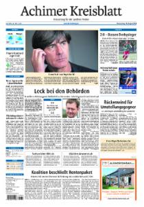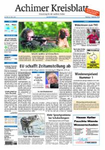 Das Achimer Kreisblatt ist eine Nebenausgabe der Kreiszeitung. Verbreitungsgebiet ist Achim, Oyten, Ottersberg und Thedinghausen.