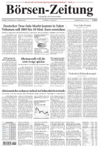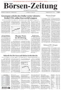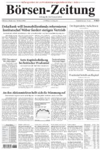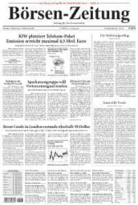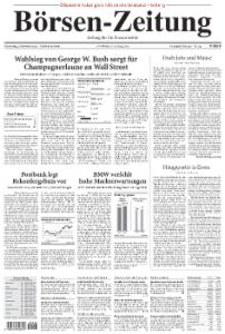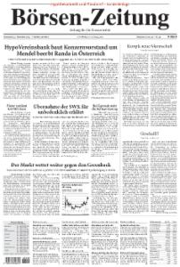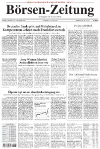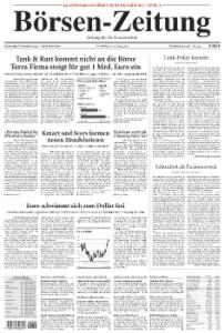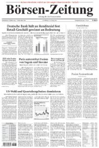 Die Börsen-Zeitung richtet ihren Fokus auf die Bereiche Finanzmärkte, Unternehmensberichte und Kreditwirtschaft. Sie erscheint 5mal wöchentlich von Montag bis Freitag.