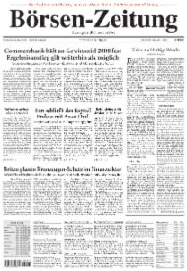 Die Börsen-Zeitung richtet ihren Fokus auf die Bereiche Finanzmärkte, Unternehmensberichte und Kreditwirtschaft. Sie erscheint 5mal wöchentlich von Montag bis Freitag.