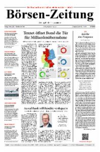 Die Börsen-Zeitung richtet ihren Fokus auf die Bereiche Finanzmärkte, Unternehmensberichte und Kreditwirtschaft. Sie erscheint 5mal wöchentlich von Montag bis Freitag.
