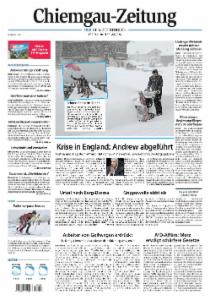 Die Chiemgau-Zeitung ist eine lokale Tageszeitung für den Raum Traunstein/Chiemgau und berichtet umfassend über regionale wie auch überregionale Nachrichten, Sport und aktuelle Ereignisse. Sie gehört zum Verbund der OVB-Heimatzeitungen.