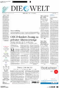 Die überregionale Tageszeitung aus Berlin zählt zu den führenden Zeitungen Europas. DIE WELT bietet klar strukturierte Nachrichten, Hintergrundinformationen, Analysen und Kommentare. DIE WELT ist die moderne Medienmarke für Qualitätsjournalismus, auf dem Papier, online und als E-Paper.