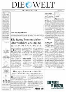 Die überregionale Tageszeitung aus Berlin zählt zu den führenden Zeitungen Europas. DIE WELT bietet klar strukturierte Nachrichten, Hintergrundinformationen, Analysen und Kommentare. DIE WELT ist die moderne Medienmarke für Qualitätsjournalismus, auf dem Papier, online und als E-Paper.