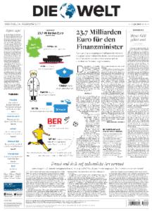 Die überregionale Tageszeitung aus Berlin zählt zu den führenden Zeitungen Europas. DIE WELT bietet klar strukturierte Nachrichten, Hintergrundinformationen, Analysen und Kommentare. DIE WELT ist die moderne Medienmarke für Qualitätsjournalismus, auf dem Papier, online und als E-Paper.