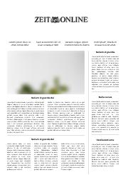 Die ZEIT online ist das Onlineangebot der ZEIT - einer der führenden Wochenzeitungen in Deutschland. Die Publikation berichtet über aktuelle Themen aus Politik und Wirtschaft, Kultur und Wissenschaft sowie Technik und Medizin. Weitere Themen sind Gesellschaft und Bildung wie auch Reisen.