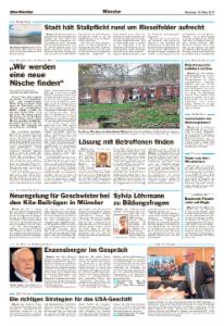 Am Stammsitz Oelde versorgt die Mantelredaktion die Leser mit Nachrichten aus Politik, Wirtschaft, Kultur, Westfalen, Sport, Ratgeber und Aus aller Welt.
