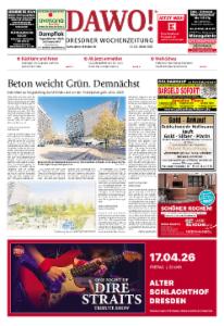 Immer samstags finden alle Dresdner Haushalte die kostenfreie Wochenzeitung DAWO! – DRESDEN AM WOCHENENDE in ihrem Briefkasten. In variablen Rubriken widmet sich das Anzeigenblatt dem Thema Freizeitgestaltung in Dresden und präsentiert Angebote zu Veranstaltungen, Kino, Unterhaltung und Reise. Ratgeberseiten mit Artikeln zum Stellenmarkt, Reisemarkt und Auto komplettieren das redaktionelle Angebot.