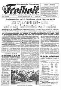 "Freiheit" erschien erstmals am 16. April 1946 unter diesem Namen als Organ der SED in Halle.