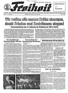 "Freiheit" erschien erstmals am 16. April 1946 unter diesem Namen als Organ der SED in Halle.