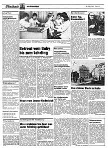 1990 ging die Zeitung aus dem Vermögen der Treuhand an die Verlagsgruppe M. DuMont Schauberg und erschien am 17. März 1990 erstmals als "Mitteldeutsche Zeitung". Die Ausgaben ab 17. März 1990 sind in der Datenbank "Mitteldeutsche Zeitung" enthalten.