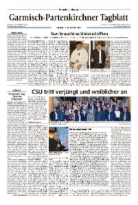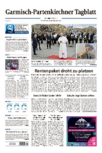 Das Garmisch-Partenkirchner Tagblatt gehört zu den Heimatzeitungen des Münchner Merkurs. Die Zeitung berichtet über alles Wichtige in der Gemeinde und im Landkreis Garmisch-Partenkirchen.