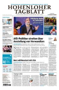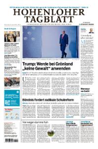 Das "Hohenloher Tagblatt" ist eine Regionalausgabe der Südwest Presse, arbeitet aber auch eng zusammen mit dem Haller Tageblatt. Das "Hohenloher Tagblatt" erscheint in den Landkreisen: Hohenlohekreis.