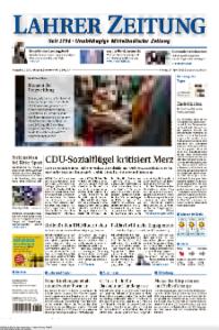 Die Lahrer Zeitung ist eine in Lahr (Baden-Württemberg) erscheinende Regionalzeitung und Teil der Schwarzwälder Bote Mediengruppe.