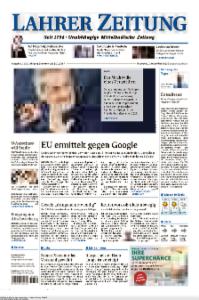 Die Lahrer Zeitung ist eine in Lahr (Baden-Württemberg) erscheinende Regionalzeitung und Teil der Schwarzwälder Bote Mediengruppe.