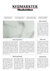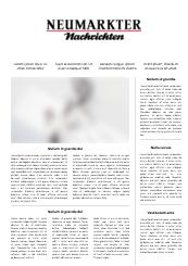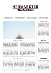 Die Neumarkter Nachrichten sind die Tageszeitung für Politik, Lokales, Wirtschaft, Kultur und Sport für Neumarkt und den Landkreis Neumarkt in Gemeinschaft mit den Nürnberger Nachrichten.