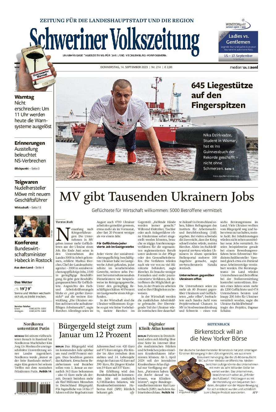 Presse Schweriner Volkszeitung 14.09.2023
