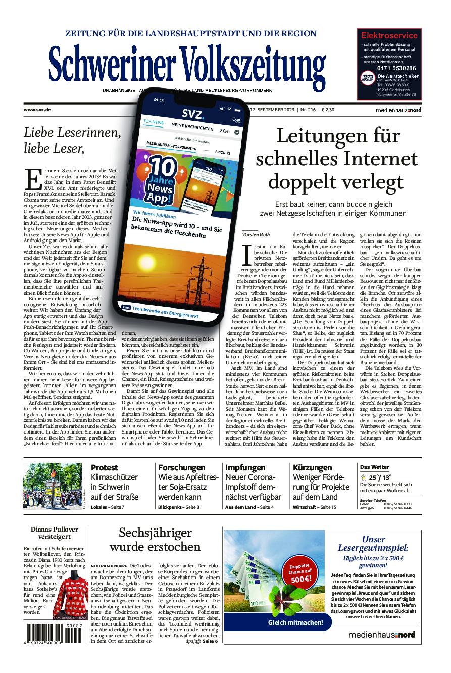 Presse Schweriner Volkszeitung 16.09.2023