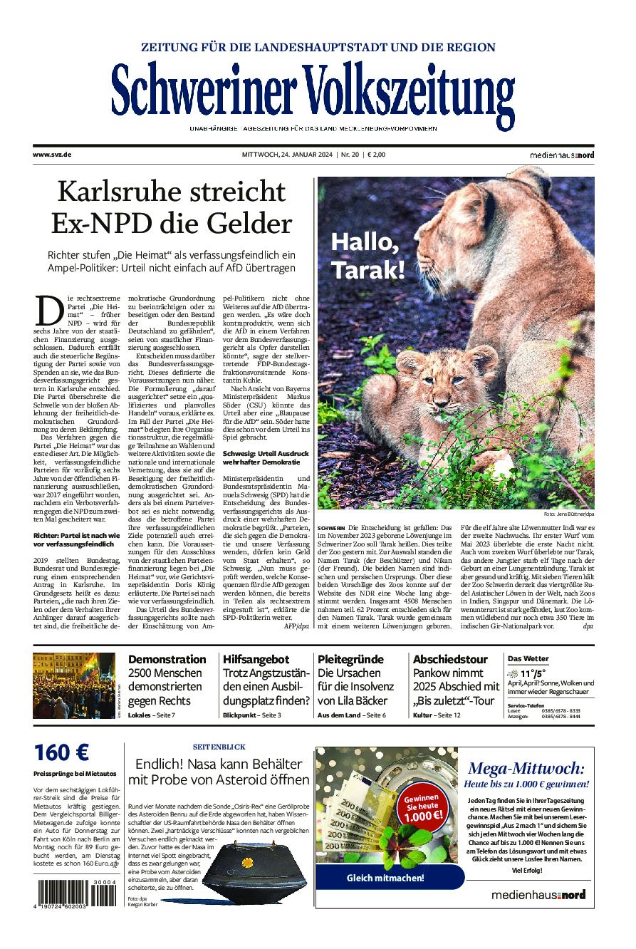 Presse Schweriner Volkszeitung 25.01.2024