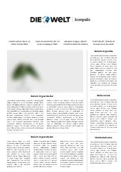 Die "WELT KOMPAKT" erscheint von Montag bis Freitag im Axel Springer Verlag. Bei GENIOS sind daneben auch "DIE WELT" und "WELT am SONNTAG" verfügbar.