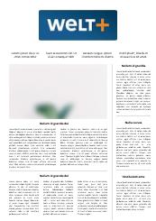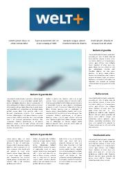 WELTplus gehört zum digitalen Angebot der WELT. Hier wird eine Auswahl von tiefergehenden und hintergründigen Texten, investigativen Beiträgen, spannenden Reportagen, längeren Strecken, exklusiven Stories, recherchiert, geschrieben und kuratiert von einer vielfach ausgezeichneten, meinungsstarken Redaktion.