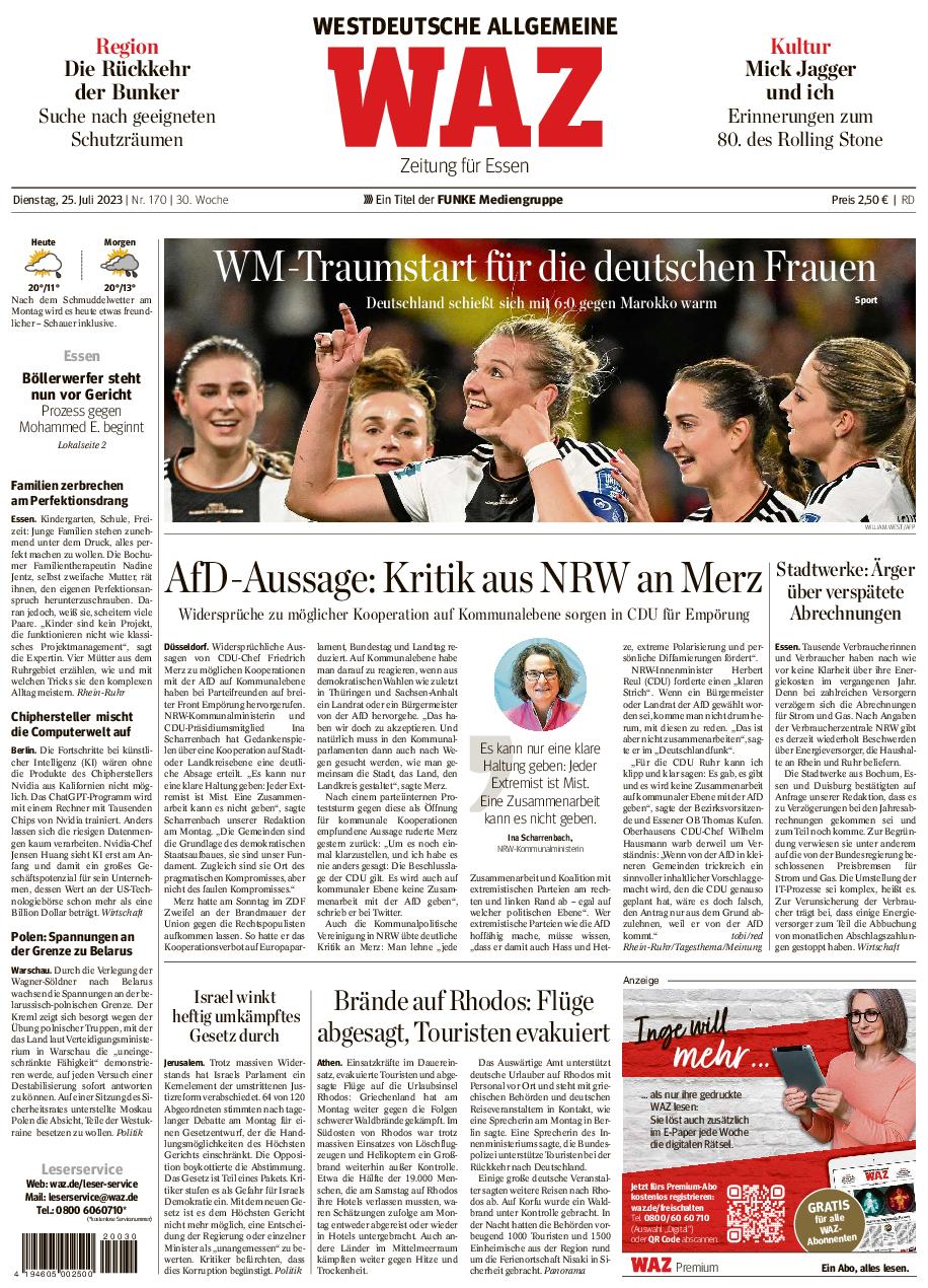 Presse Westdeutsche Allgemeine Zeitung 25.07.2023