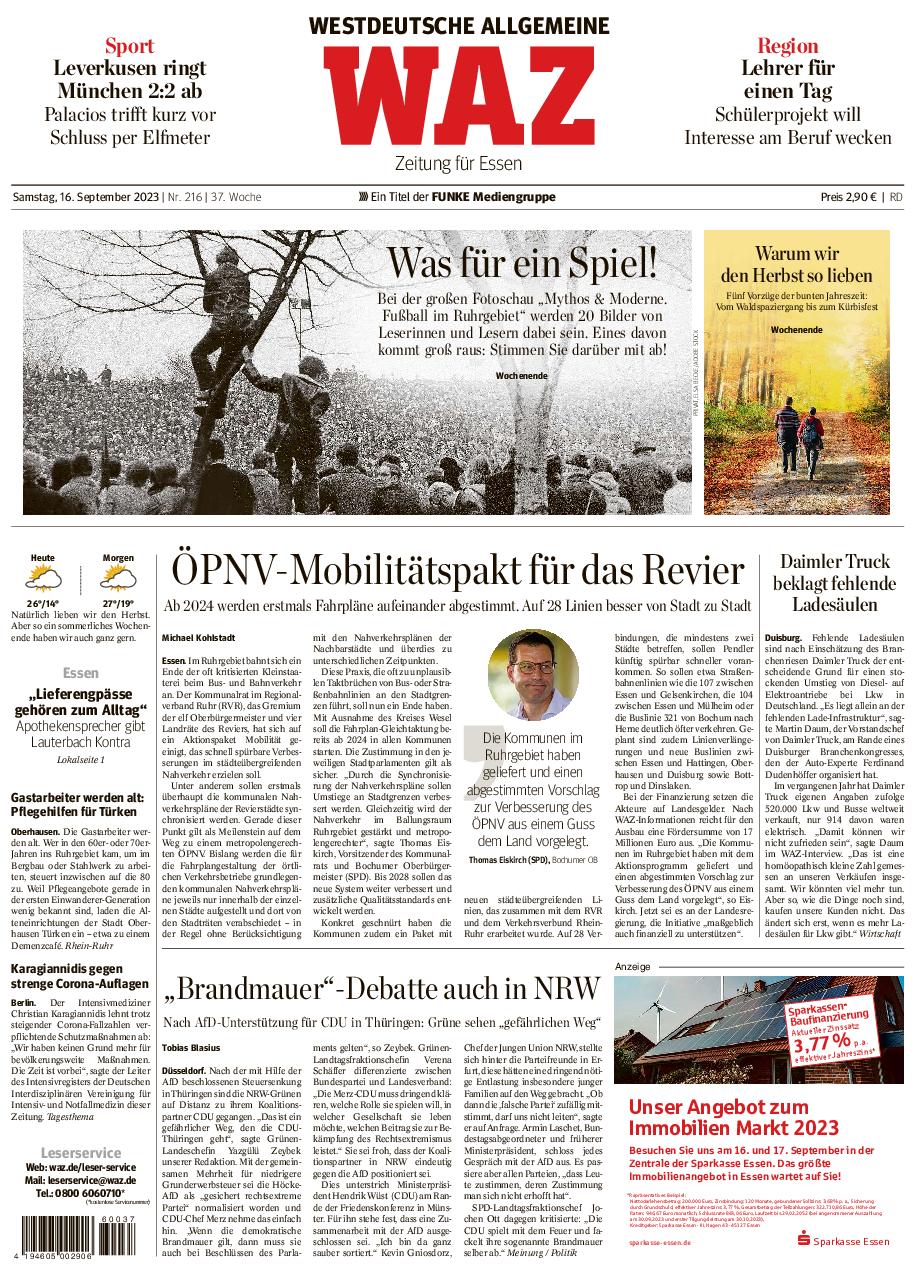 Presse Westdeutsche Allgemeine Zeitung 16.09.2023