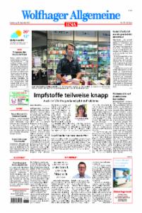Die Wolfhager Allgemeine ist eine Nebenausgabe der HNA. Verbreitungsgebiet ist Wolfhagen, Kassel, Bad Karlshafen, Liebenau, Trendelburg, Breuna, Habichtswald und Zierenberg.