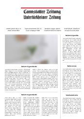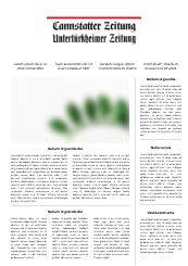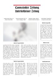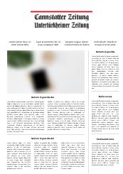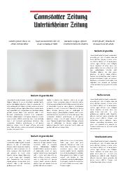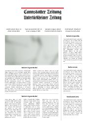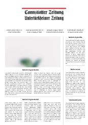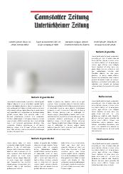 cannstatter-zeitung.de ist das Online-Angebot der Cannstatter Zeitung. Sein redaktioneller Schwerpunkt liegt im Lokalen. Die lokale Kompetenz findet sich nicht nur im Lokalteil, sondern auch im lokalen Sport und der lokalen Kultur. Hierbei stehen besonders die Stuttgarter Neckarvororte von Obertürkheim bis nach Mühlhausen im Vordergrund.