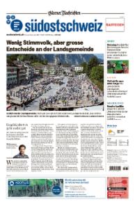 Die «Südostschweiz Glarner Nachrichten» berichtet über lokale, regionale und internationale Ereignisse, analysiert das politische Geschehen und bietet kompetent recherchierte Hintergrundberichte und Reportagen zu aktuellen Themen, insbesondere aus der Region Glarus.