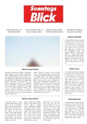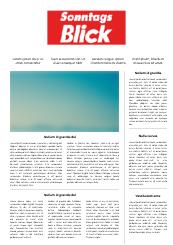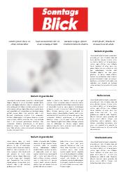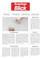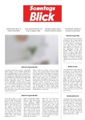 Die Boulevard Publikation "SonntagsBlick" ist die größte Schweizer Sonntagszeitung mit Berichterstattung zu den Themen Politik, Wirtschaft, Kultur, Sport, Prominenz, Freizeit und LifeStyle.