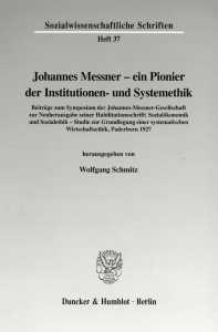 Johannes Messner - ein Pionier der Institutionen- und Systemethik.